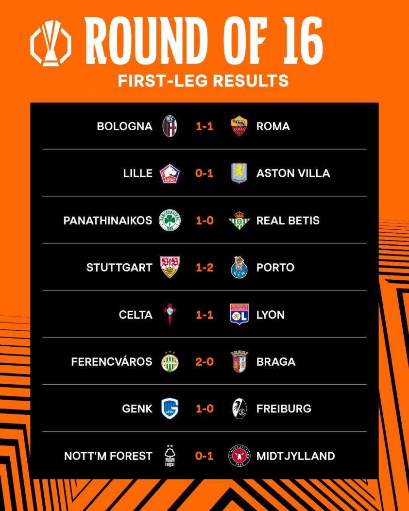 八分之一决赛首回合后, 多场对决局势仍开放。然而,阿斯顿维拉、波尔图及费伦茨瓦罗斯等队在决定欧联杯四分之一决赛门票的次回合关键战前握有重要优势。