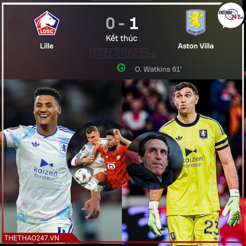 比赛转折点出现在下半场,奥利·沃特金斯打入唯一进球。埃兹里·孔萨长传发起攻势,埃米利亚诺·布恩迪亚意外头球助攻,沃特金斯突入射门越过门将伯克·奥泽。随后阿斯顿维拉险些扩大优势,阿马杜·奥纳纳禁区外弧线射门击中横梁。里尔在尾声阶段控球占优,但仅创造一次明显机会后接受败局。